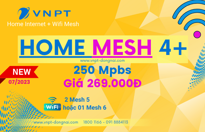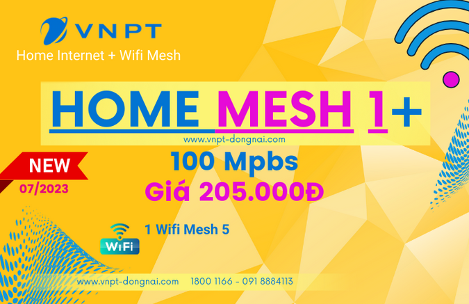 Gói Mesh 1+ 100Mbps 100Mbps: Với mức giá 205.000 đồng/tháng, khách hàng sẽ được sử dụng tốc độ internet lên đến 100Mbps, kèm theo đó là gói truyền hình Mytv có hơn 180 kênh đặc sắc, bao gồm các kênh truyền hình nổi tiếng như HBO, Cinemax, Star Movies, Fox Sports, ESPN, National Geographic, Discovery, VTV Cab...