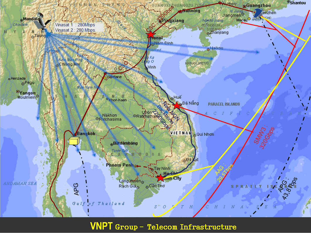 Tốc độ mạng trục Backbone Bắc – Nam có khả năng cung cấp 10Gbps, kết nối trực tiếp Internet quốc tế qua tuyến cáp quang biển hiện đại nhất với dung lượng 2,5Gbps
