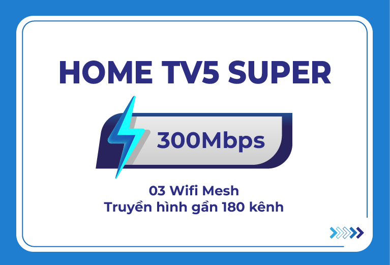 - Tốc độ internet: Gói Internet Home TV 5 Super VNPT cung cấp tốc độ 300Mbps, đảm bảo truy cập internet nhanh chóng và ổn định.