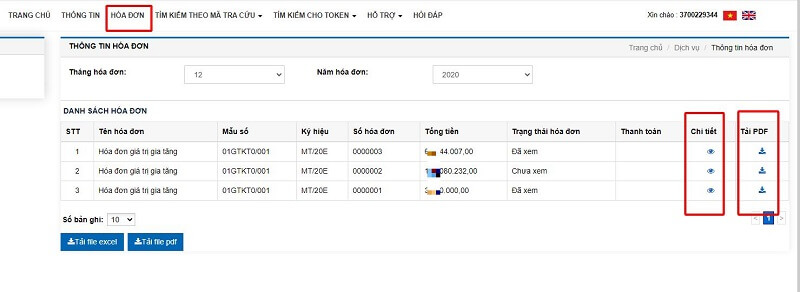 Xác nhận những thông tin đã chính xác, có thể tải về theo file PDF bằng cách nhấn vào ký hiệu download ở mục tải file. Nếu muốn tải về hoá đơn điện tử dưới dạng xml hoặc html, hãy nhấn vào nút ký hiệu view ở mục thao tác. Mẫu hoá đơn cần tra cứu sẽ hiện lên. Bạn kéo xuống dưới để thấy nút “tải hoá đơn Zip” để tiến hành tải về máy phục vụ lưu trữ, kê khai thuế,...