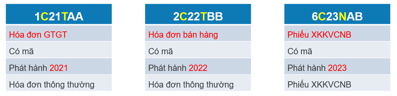 - Ký tự đầu tiên là một chữ cái (C hoặc K): C thể hiện hóa đơn điện tử có mã của cơ quan thuế. K thể hiện hóa đơn điện tử không có mã.