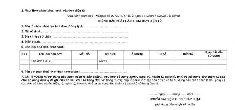 - Tên hoá đơn, ký hiệu mẫu số hoá đơn, ký hiệu hoá đơn, ngày bắt đầu sử dụng, số lượng hoá đơn thông báo phát hành từ số xxx đến số xxx.